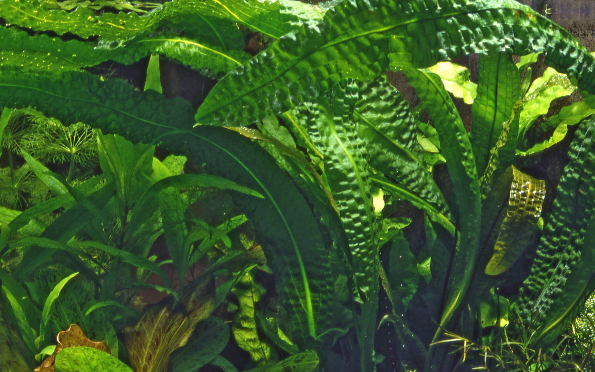 Sie eignet sich nur für größere Aquarien. Bei günstigen Wachstumsbedingungen kann sie sehr große Blätter bilden - bis zu 80 cm lang und 8 cm breit. Die ältesten Blätter sind dunkelgrün, die jüngeren hellgrün und manchmal bräunlich bis sie voll entwickelt sind.