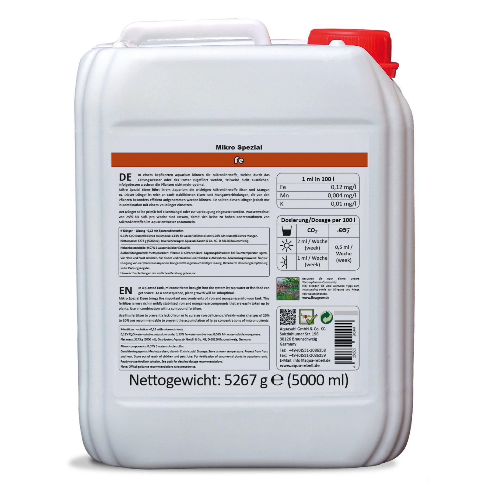 Mikro Spezial Eisen dient der gezielten und zusätzlichen Wasserpflanzendüngung mit dem essentiellen Mikronährstoff Eisen. Neben Eisen wird auch das wichtige Spurenelement Mangan zugedüngt und gewährleistet einen gesunden und üppigen Wuchs der Wasserpflanzen.