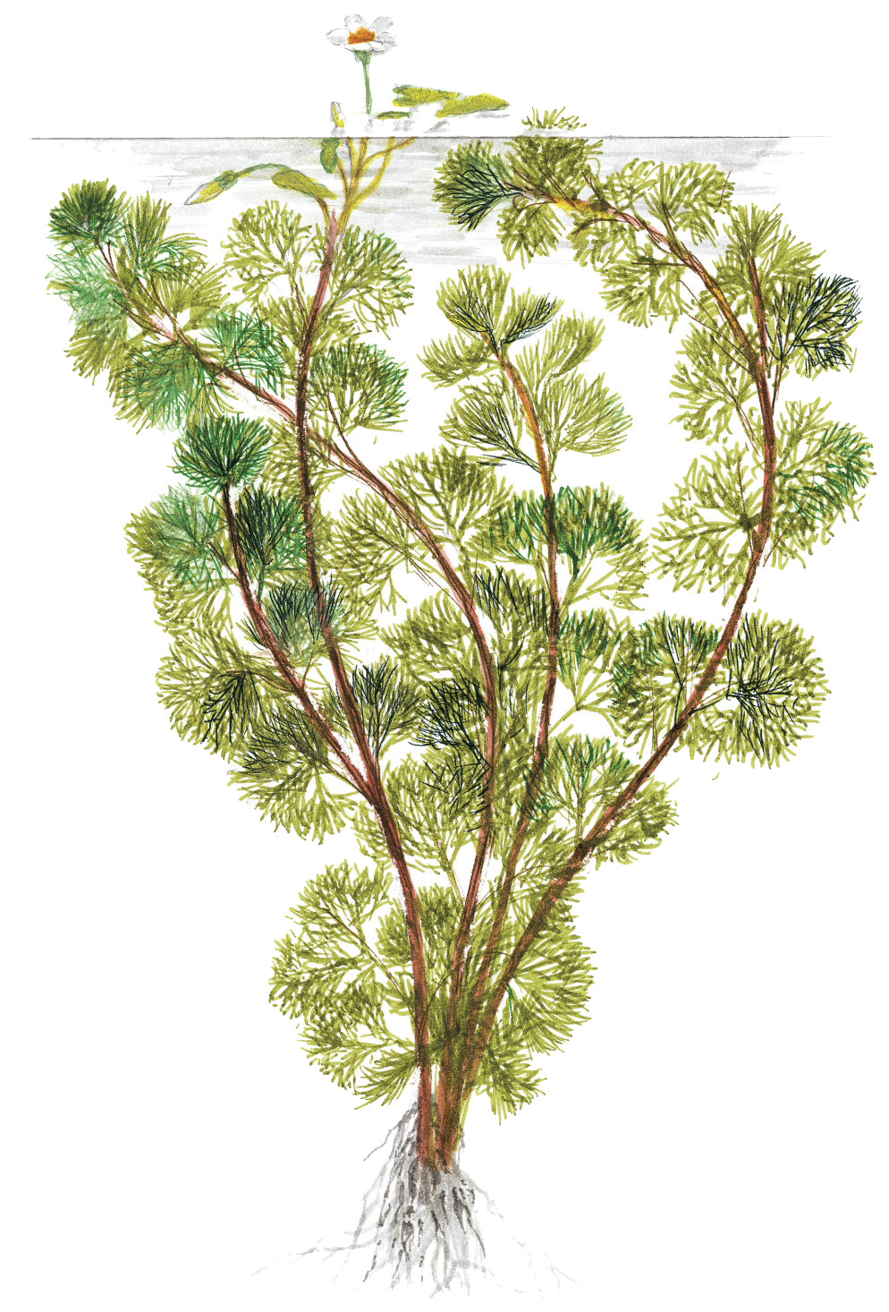 Eine sehr beliebte Aquarienpflanze aus Südamerika, die schöne, feine Blätter bildet und 30-80 hoch wird. Von den Cabomba-Arten fordert sie am wenigsten Licht, bereitet jedoch in schwach beleuchteten Aquarien Probleme. Wenn nicht genügend Licht vorhanden ist, empfiehlt sich ein Versuch mit der weniger lichthungrigen Limnophila sessiliflora. Sieht in Gruppen am dekorativsten aus.