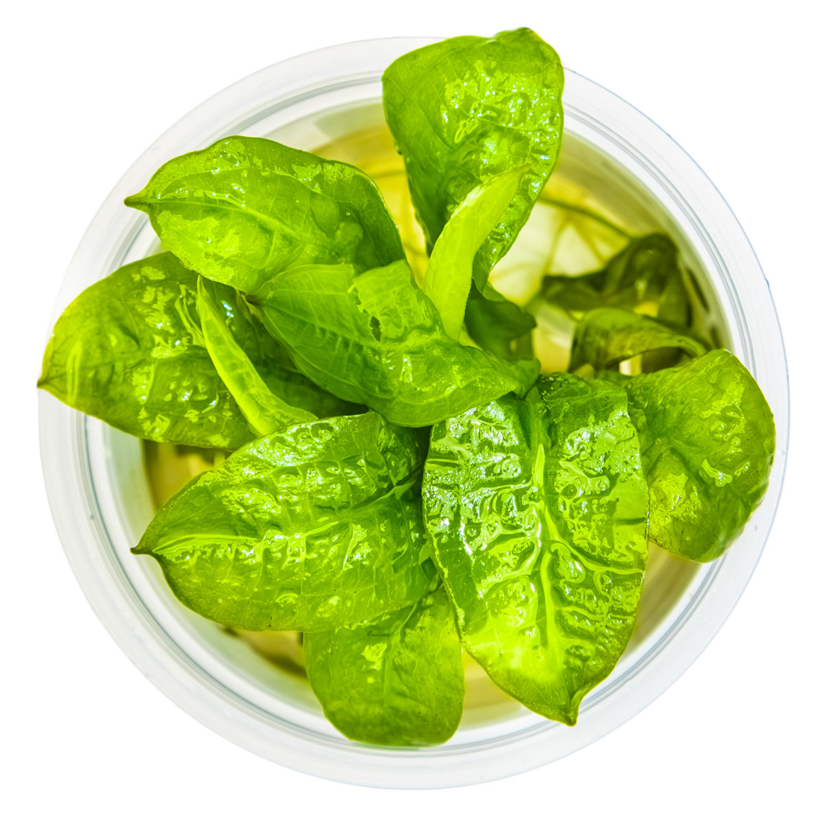 Echinodorus grisebachii 'Tropica', auch bekannt als Echinodorus parviflorus 'Tropica', ist eine kleine, charakteristische Schwertpflanze, die in den 1980er Jahren in der Gärtnerei Tropica in Dänemark entdeckt wurde. Diese Pflanze eignet sich aufgrund ihrer kompakten Größe, die typischerweise zwischen 5 und 10 cm beträgt, gut für den Vordergrund oder Mittelgrund von Aquarien. Sie bildet eine sich ausbreitende Rosette aus mittel- bis dunkelgrünen, leicht bullierten Blättern, die schmal und verkehrt eiförmig sind und an Samolus valerandi erinnern. Text- und Bildrechte: Tropica Aquarium Plants