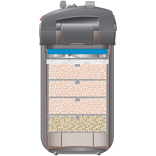 Es gibt vier Modelle für Aquarien von 180 bis 700 Liter, darunter auch einen Thermofilter (600T) mit integriertem Heizer. Außerdem bietet Ihnen der professionel 5e 350 zwei besondere Vorteile: Er ist komplett ausgestattet mit Filtermedien und Sie können die Filterfunktion verlängern (Xtender).