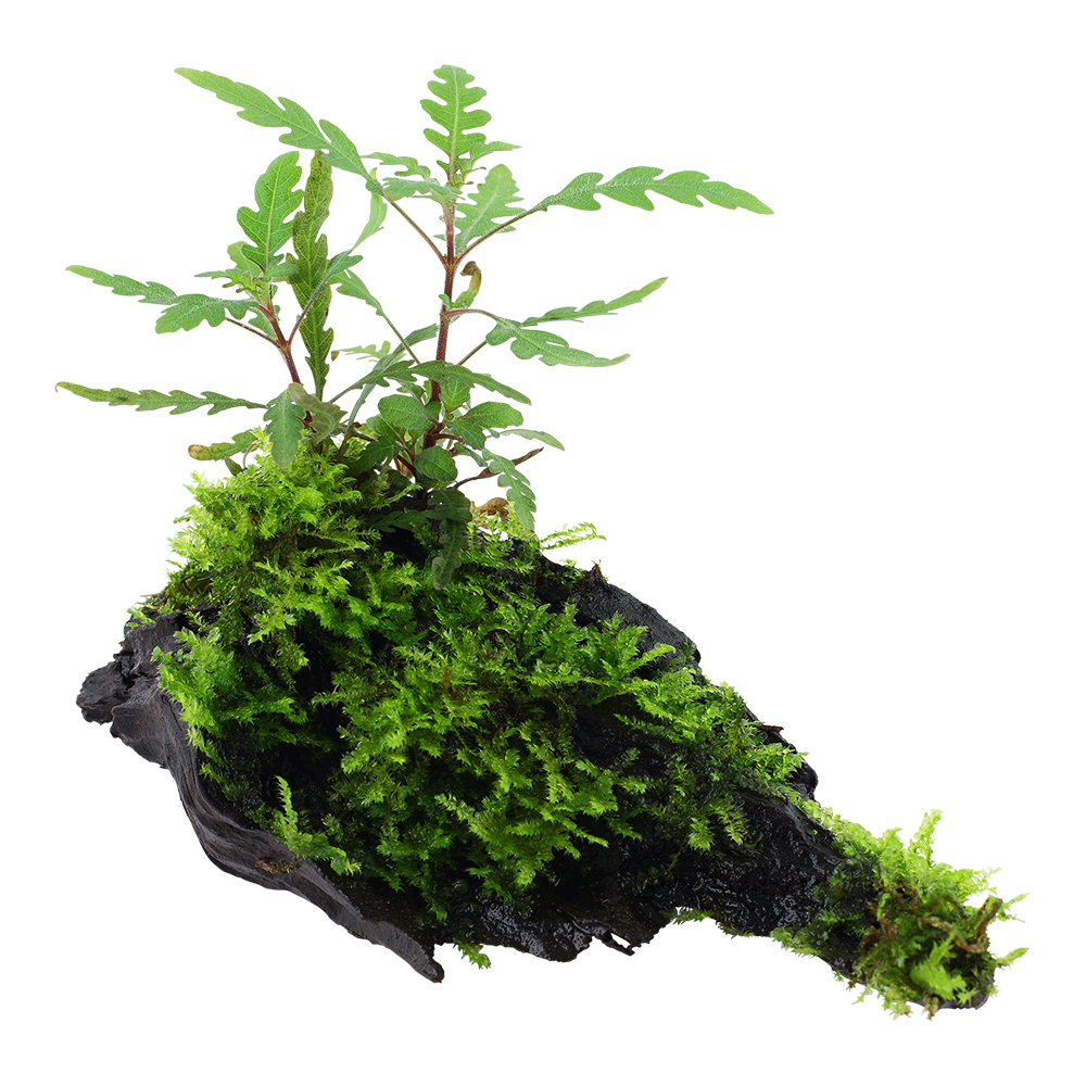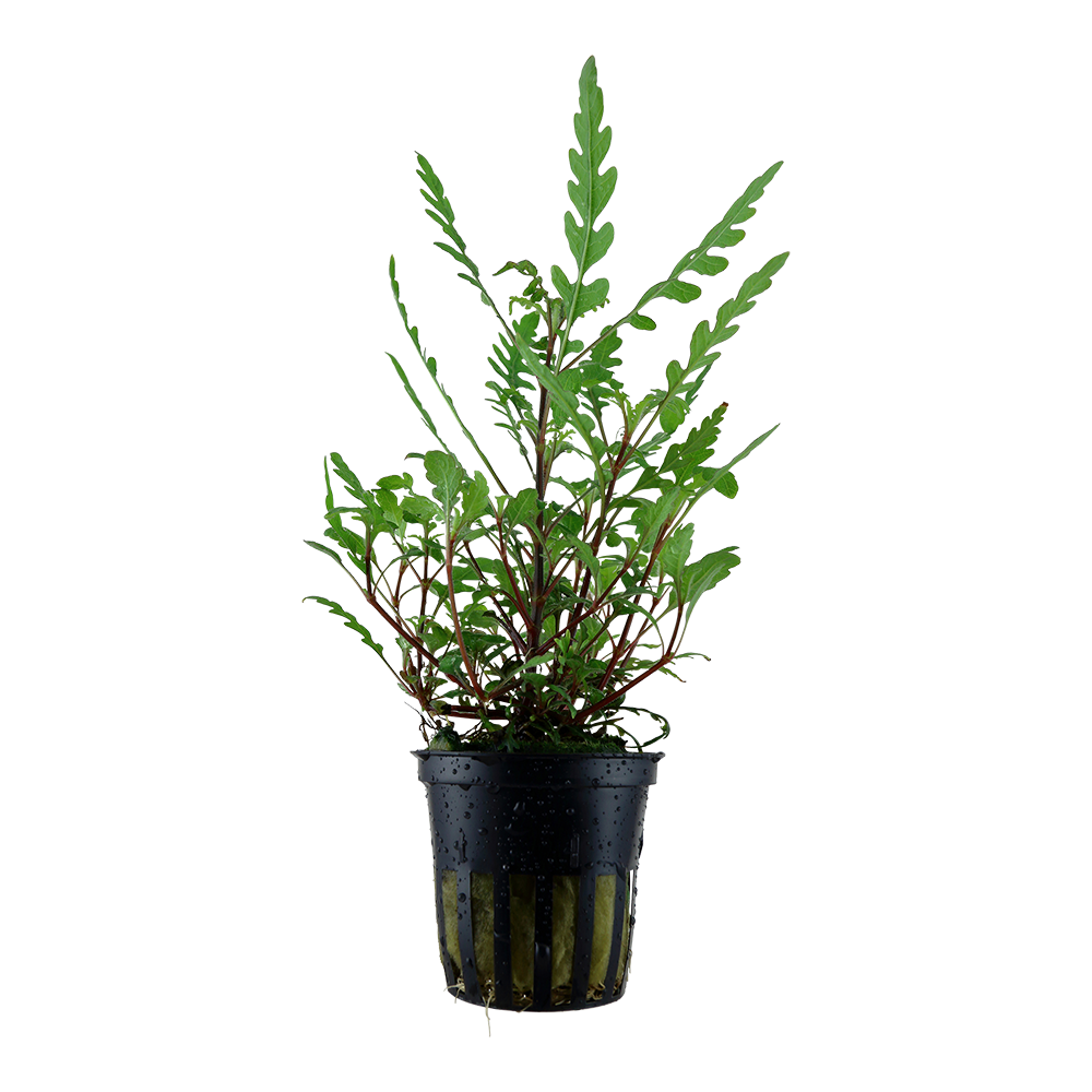 Hygrophila pinnatifida stammt ursprünglich aus Indien. Mit ihren braunen, gefleckten Blättern auf der Oberfläche und der charakteristischen burgunderroten Farbe auf der Unterseite ist Hygrophila pinnatifida ein garantierter Blickfang. Der Wuchs ist mäßig, die Stämme werden 15-40 cm hoch und 10-20 cm breit, und die Farbe ist attraktiv, wenn sie in kleinen Gruppen vor einem einfarbigen Hintergrund gepflanzt wird. Für einen "buschigeren" Wuchs empfiehlt es sich, die Stängel zu stutzen.
