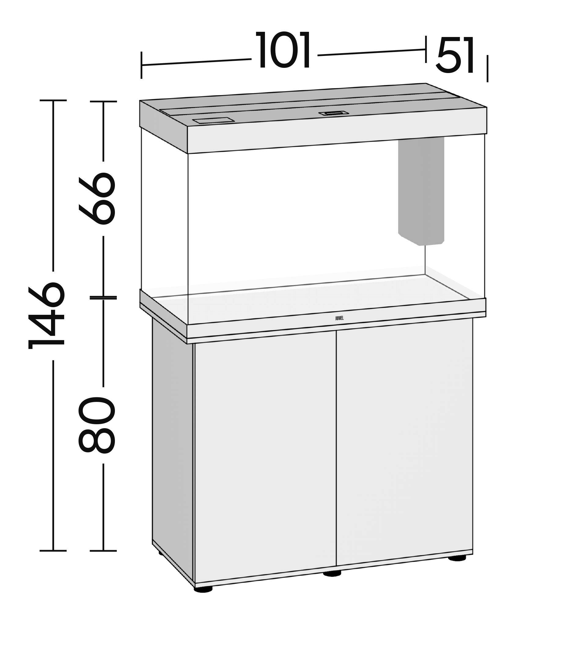 Das RIO 290 LED hebt Aquariendesign auf ein neues Level – mit kompakter Grundfläche und beeindruckender Höhe für noch mehr kreative Freiheit. Mit Maßen von 101 x 51 cm und einer stattlichen Höhe von 66 cm bietet es die perfekte Bühne für atemberaubende Unterwasserlandschaften.