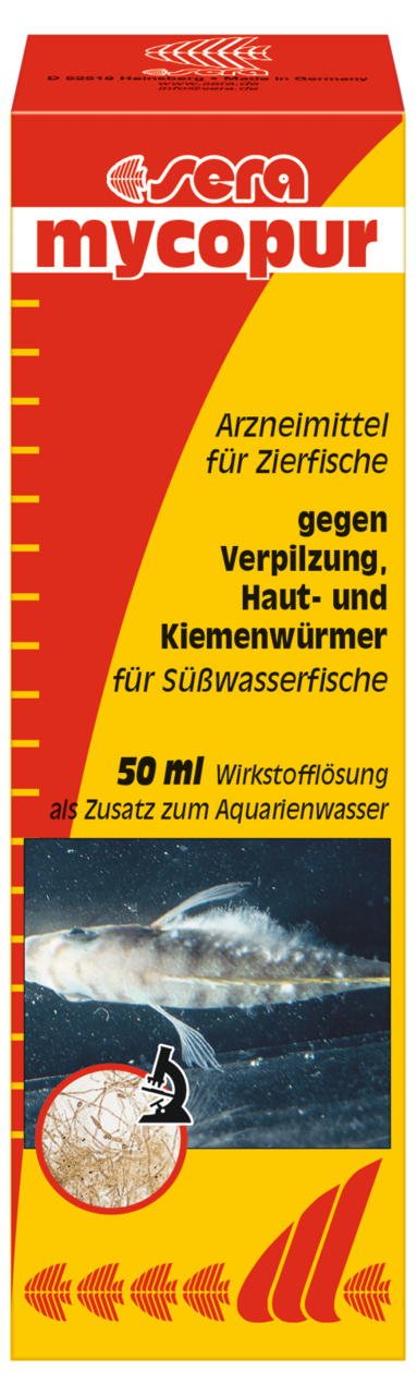Der zusätzliche Einsatz des Pflegemittels sera ectopur unterstützt die wirksame Behandlung. Zu niedrige Wassertemperaturen fördern das Pilzwachstum. Das Medikament ist auch wirksam gegen Laichverpilzung und kann weiterhin bei äußeren Verletzungen sowie gegen Haut-, Kiemen- und Schuppenwürmern verwendet werden.
